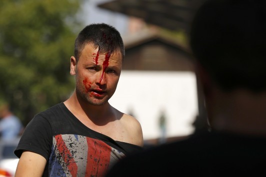 Ένας άνδρας με το πρόσωπό του γεμάτο αίματα. Μια γυναίκα με το μάτι της κατακόκκινο και πρησμένο. Παιδιά να κλαίνε γιατί φοβούνται. Ένας αστυνομικός σηκώνει το γκλοπ. Άνδρες, γυναίκες σπρώχνονται έξω από σιδηροδρομικό σταθμό του Beli Manastir στα σύνορα της Κροατίας.