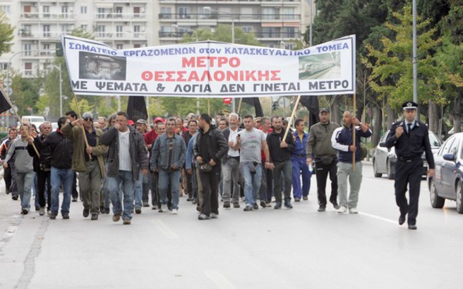 Συγκέντρωση διαμαρτυρίας στο άγαλμα Βενιζέλου, απέναντι από τα γραφεία του ΣΥΡΙΖΑ στη Θεσσαλονίκη πραγματοποίησαν περίπου 70 εργαζόμενοι στις αρχαιολογικές ανασκαφές στο μετρό.