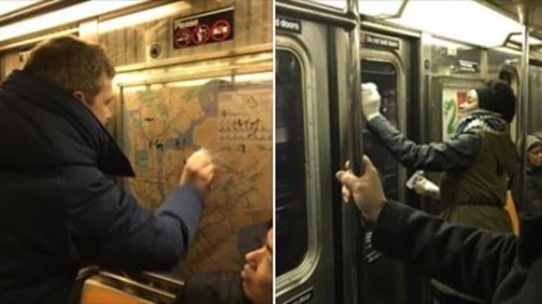 Επιβάτες του μετρό του Μανχάταν δεν έμειναν άπραγοι βλέποντας ντροπιαστικά ναζιστικά σύμβολα. Εγιναν μια ομάδα, τα καθάρισαν με απολυμαντικό χεριών και έγιναν viral.