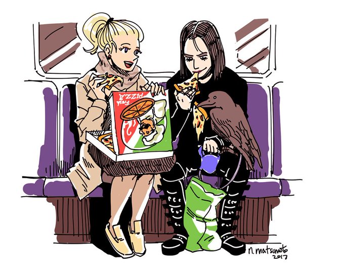 Η γελοιογράφος Νίνα Ματσουμότο, που είδε τη φωτογραφία, εμπνεύστηκε και σε σκίτσο της απεικόνισε την ταξιδιώτισσα με το κοράκι με μια άλλη κυρία που είχε γίνει viral επειδή την είχε πάρει ο ύπνος και της είχε πέσει η πίτσα στο μετρό του Λονδίνου. Στο σκίτσο η κυρία με την πίτσα μοιράζεται το φαγητό της τόσο με τη νεαρή κοπέλα όσο και με το κοράκι της.