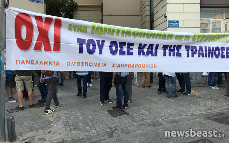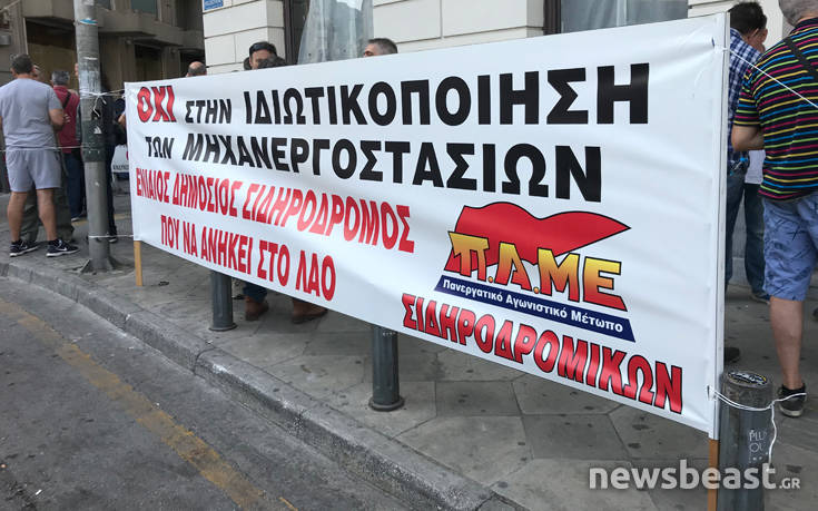 Συγκέντρωση διαμαρτυρίας πραγματοποιεί έξω από το ΤΑΙΠΕΔ (Κολοκοτρώνη 1 & Σταδίου) η Πανελλήνια Ομοσπονδία Σιδηροδρομικών, εκφράζοντας την αντίθεσή της, σύμφωνα με ανακοίνωση που εξέδωσαν «την πώληση των εταιρειών του Σιδηρόδρομου».