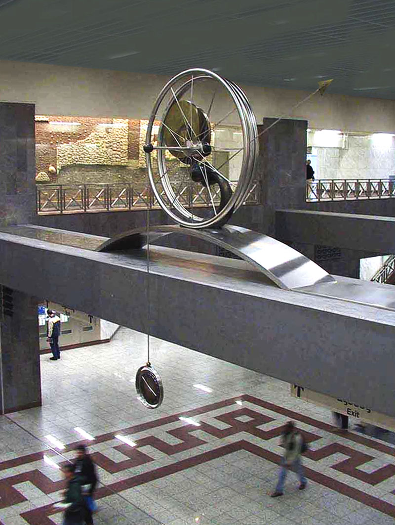 Ένα από τα έργα του, ίσως αυτό που έχουν δει τα πιο πολλά ζευγάρια μάτια, είναι «Το Ωρολόγιον του Μετρό» (2001), το ρολόι ύψους 5,50 μέτρων, κατασκευασμένο από μπρούτζο και ανοξείδωτο χάλυβα που κατασκευάστηκε για να τοποθετηθεί στον κεντρικό σταθμό του Μετρό της Αθήνας, στο Σύνταγμα.