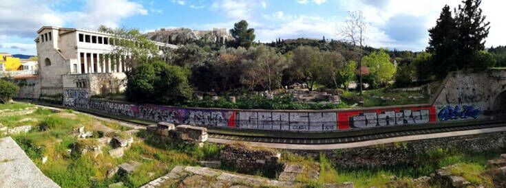 Μια από τις πιο μεγάλες παρεμβάσεις αντιγκράφιτι που έχουν γίνει τα τελευταία χρόνια στην Αθήνα βρίσκεται σε εξέλιξη εδώ και μερικές μέρες. Πρόκειται για το κομμάτι μήκους περίπου 200 μέτρων και ύψους τριών μέτρων του πέτρινου τοίχου που διατρέχει τον πεζόδρομο της Αδριανού παράλληλα με γραμμές του ΗΣΑΠ και ο οποίος μάλιστα χωρίζει τις γραμμές από τον αρχαιολογικό χώρο που αποτελεί πόλο έλξης για χιλιάδες ανθρώπους.
