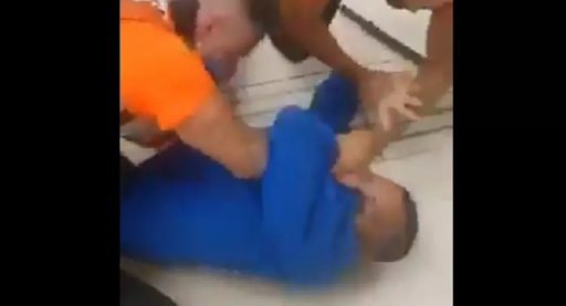 Το βίντεο δείχνει τη λεκτική διαμάχη η οποία σύντομα μετατρέπεται σε άγριο ξύλο με τους φρουρούς ασφαλείας. Ακολουθούν ουρλιαχτά με το ξύλο να συνεχίζεται και στην πλατφόρμα του μετρό. Μάλιστα, οι φρουροί φαίνεται να κάνουν και χρήση των γκλοπς τους.