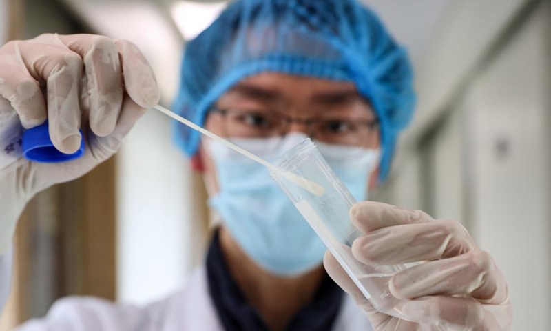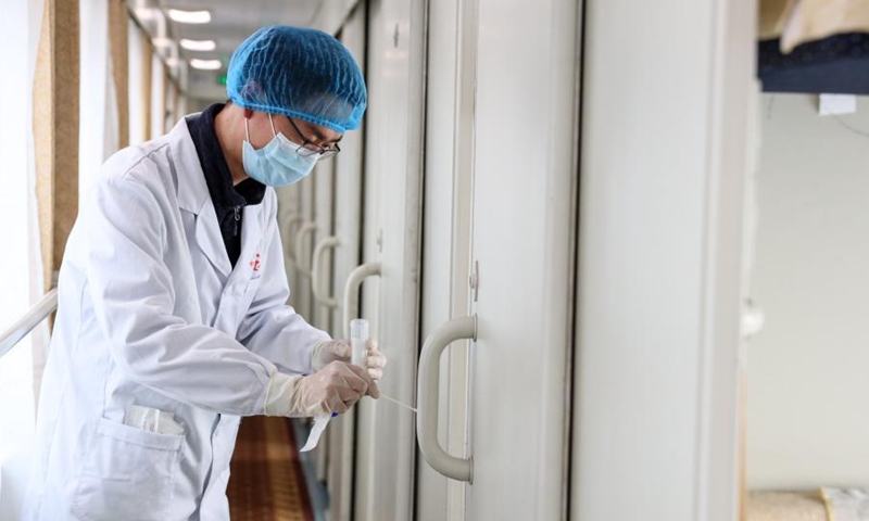 Ένα μέλος του προσωπικού συλλέγει δείγμα από το τρένο για πιθανή ύπαρξη κορωνοϊού