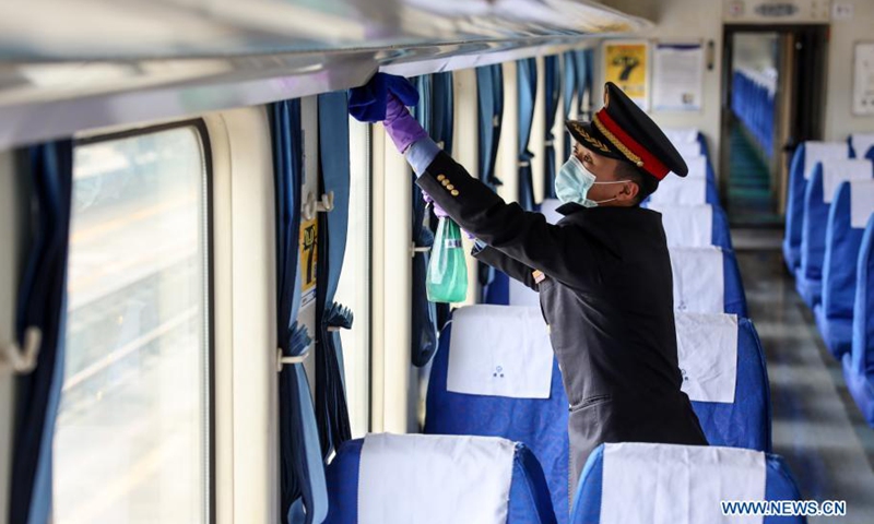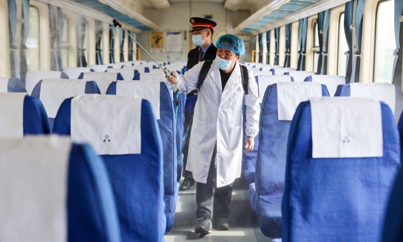Το τμήμα Guiyang της China Railway Chengdu Group Co., Ltd. πραγματοποιεί απολύμανση σε όλα τα τρένα που φτάνουν στο σιδηροδρομικό σταθμό Guiyang για να περιορίσουν την εξάπλωση της πανδημίας κατά τη διάρκεια της τουριστικής περιόδου του Spring Festival.