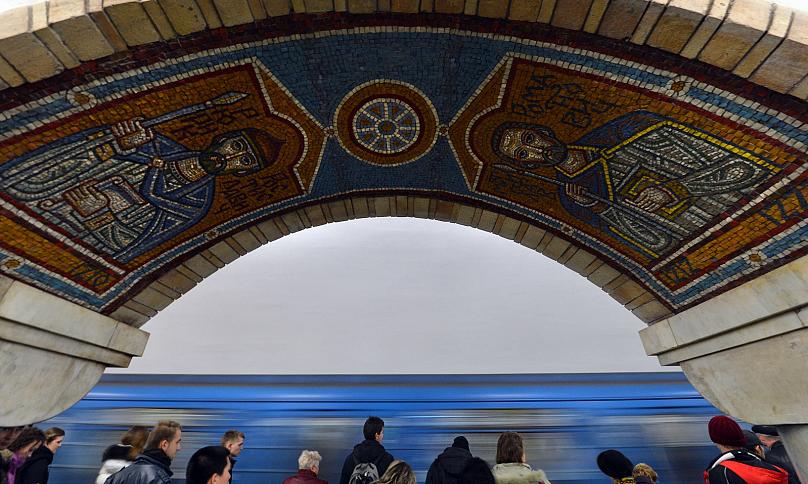 Οι τοίχοι του σταθμού, που συνεχώς ψηφίζεται ως ένας από τους πιο όμορφους του κόσμου, είναι στολισμένοι με ψηφιδωτά σε περίπλοκα σχέδια που αναπαριστούν αρχαίους τοπικούς ηγεμόνες, τους ιδρυτές του Κιέβου και τους πολιούχους αγίους της πόλης. Δείτε επίσης και τον σταθμό Osokorki, που φιλοξενεί οκτώ τεράστιες τοιχογραφίες δημιουργημένες από street artists από όλο τον κόσμο.