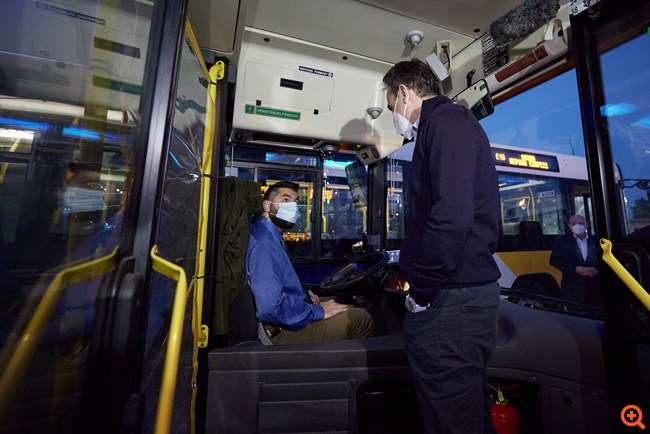 Με την ευκαιρία αυτή θέλω να ευχαριστήσω όλους τους εργαζόμενους, και τους οδηγούς και όλο το προσωπικό. Δεν είναι απλή υπόθεση να βγαίνουν τόσα λεωφορεία κάθε μέρα στους δρόμους της Αθήνας. Και ξέρω ότι κι εσείς είστε εκτεθειμένοι στην πρώτη γραμμή και στη μάχη κατά του κορονοϊου. Είναι κάτι που εκτιμούμε ιδιαίτερα αλλά κυρίως νομίζω το εκτιμά το επιβατικό κοινό της πόλης, το οποίο στηρίζει τις αστικές συγκοινωνίες, όπως εξακολουθούμε να τις στηρίζουμε και εμείς.
