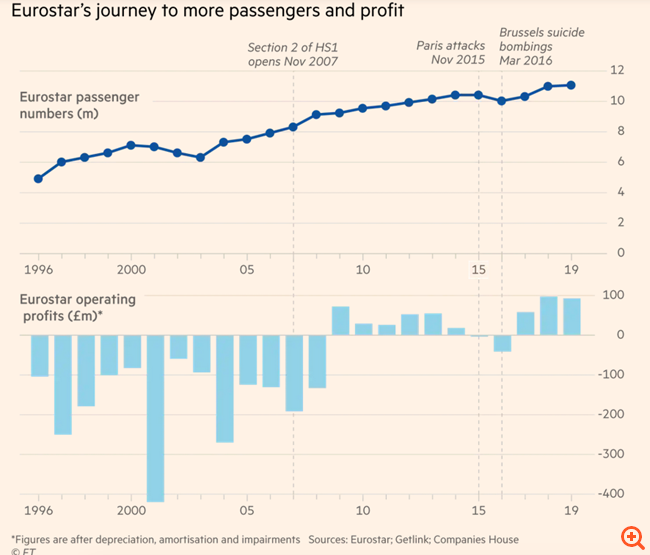 Σύμφωνα με την εταιρεία, στα πρώτα δρομολόγια από το Λονδίνο με προορισμό το Παρίσι η διάρκεια ήταν τρεις ώρες. Σήμερα αρκούν δύο ώρες και 16 λεπτά.