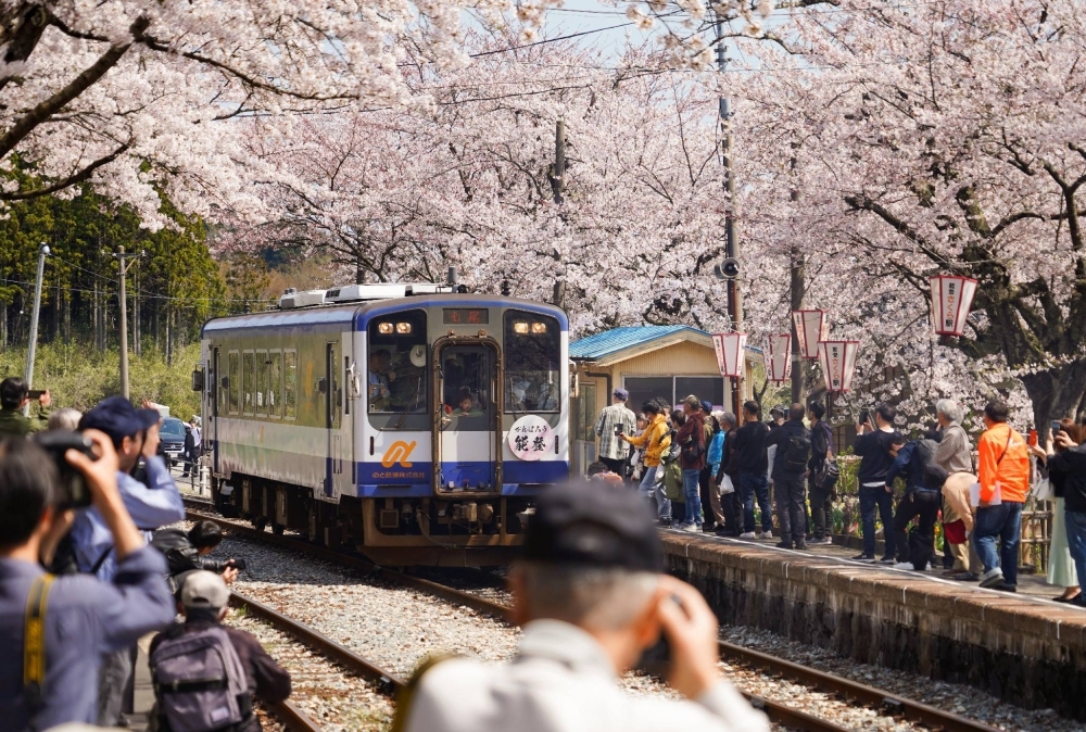 Οι θεατές των ανθισμένων κερασιών στο σταθμό Notokashima που διευθύνεται από τον Noto Tetsudo, έναν τοπικό σιδηροδρομικό φορέα, περιελάμβαναν πολλούς από το εξωτερικό του νομού. Ο σταθμός στην πόλη Anamizu επανέλαβε τη λειτουργία του στις 6 Απριλίου, ανακάμπτοντας από τις ζημιές που προκλήθηκαν από τον σεισμό των 7,6 βαθμών, ο οποίος έφτασε τα 7, το υψηλότερο επίπεδο στην κλίμακα σεισμικής έντασης της Ιαπωνίας.