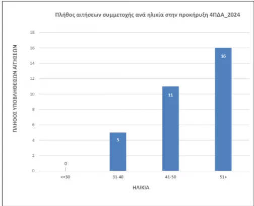 ΑΣΕΠΠλήθος αιτήσεων συμμετοχής ανά ηλικία στην προκήρυξη 4ΠΔΑ/2024