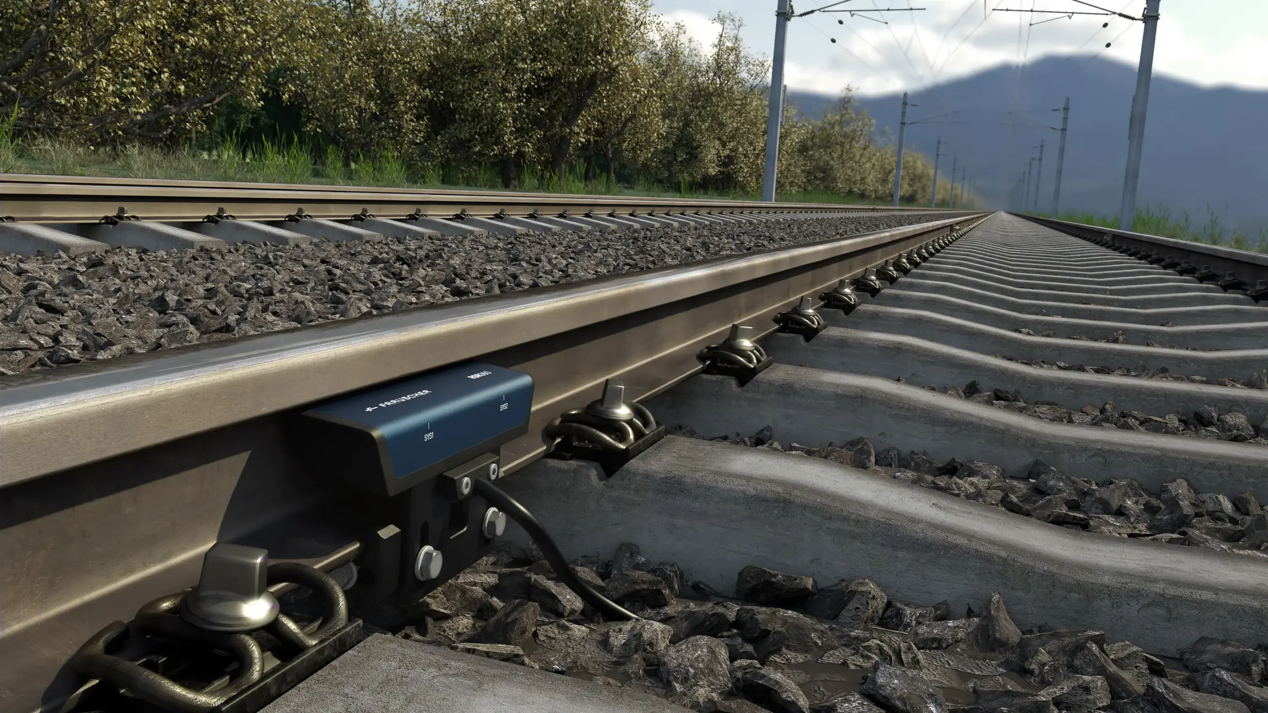 Ένας αισθητήρας τροχού Frauscher σε σιδηροδρομική γραμμή