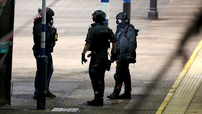 Οι ανταποκριτές έκτακτης ανάγκης της Βρετανικής Αστυνομίας Μεταφορών στην πλατφόρμα δίπλα στο τρένο στον σταθμό Huntingdon