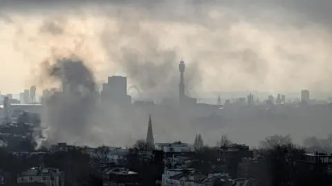 Ο καπνός από την πυρκαγιά ήταν ορατός από ένα μίλι μακριά στο Royal Free Hospital.