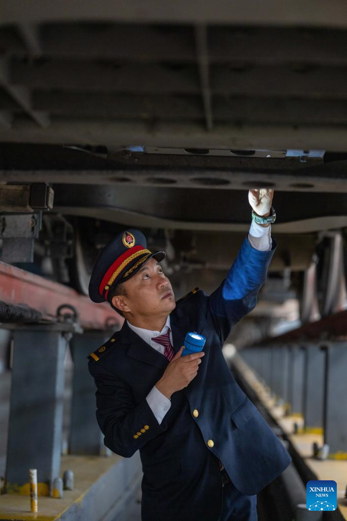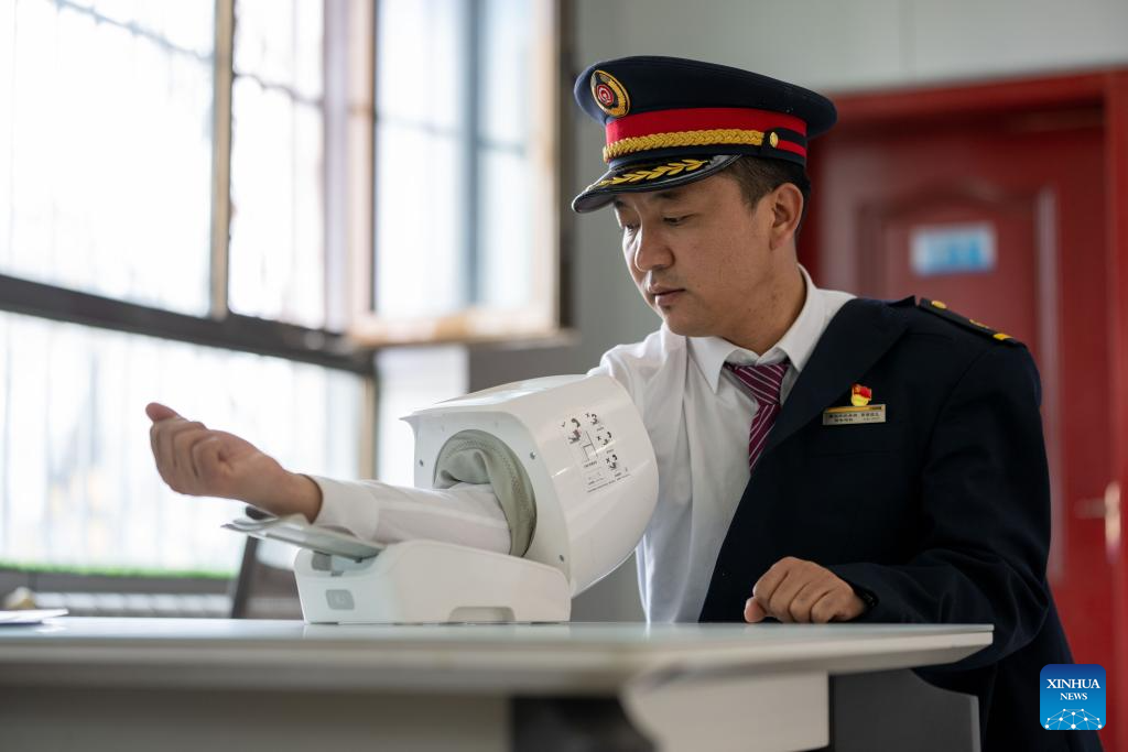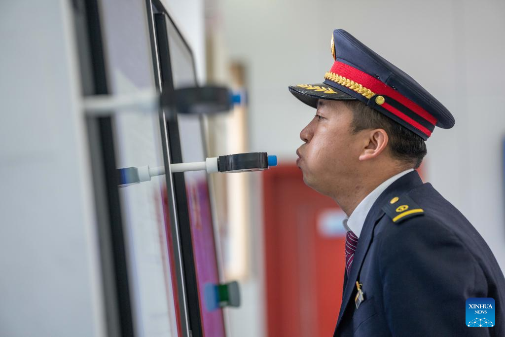 Καθώς πλησιάζει η περίοδος αιχμής των ταξιδιών, ο Sonam Wangdrak και οι συνάδελφοί του παραμένουν αφοσιωμένοι στις θέσεις τους, διασφαλίζοντας το ασφαλές ταξίδι κάθε επιβάτη. (Xinhua/Tenzing Nima Qadhup)